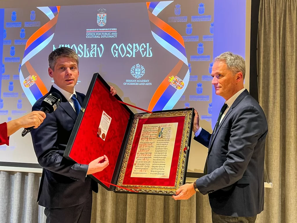 Поносни смо на сарадњу са бројним значајним институцијама, међу којима су Народна скупштина Републике Србије, Министарство културе, Канцеларија за јавну и културну дипломатију Владе Србије, као и безбедносне службе наше државе. За ове институције израђујемо протоколарне поклоне, инспирисане мотивима из српског рукописног наслеђа, са акцентом на аутентичној изради, врхунском материјалу и пажљиво бираним орнаментима. Сваки рад је ручно рађен и у потпуности прилагођен прилици и значају догађаја коме је намењен.
