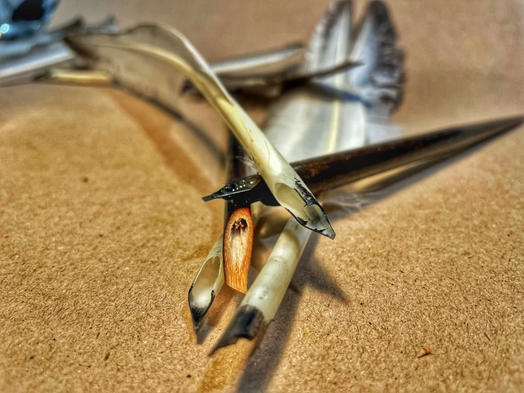 Текст исписујемо различитим врстама пера — гушчијим, тршчаним и металним — у зависности од стила и захтева текста. Свака врста пера даје јединствен квалитет линије и утицај на изглед самог рукописа.